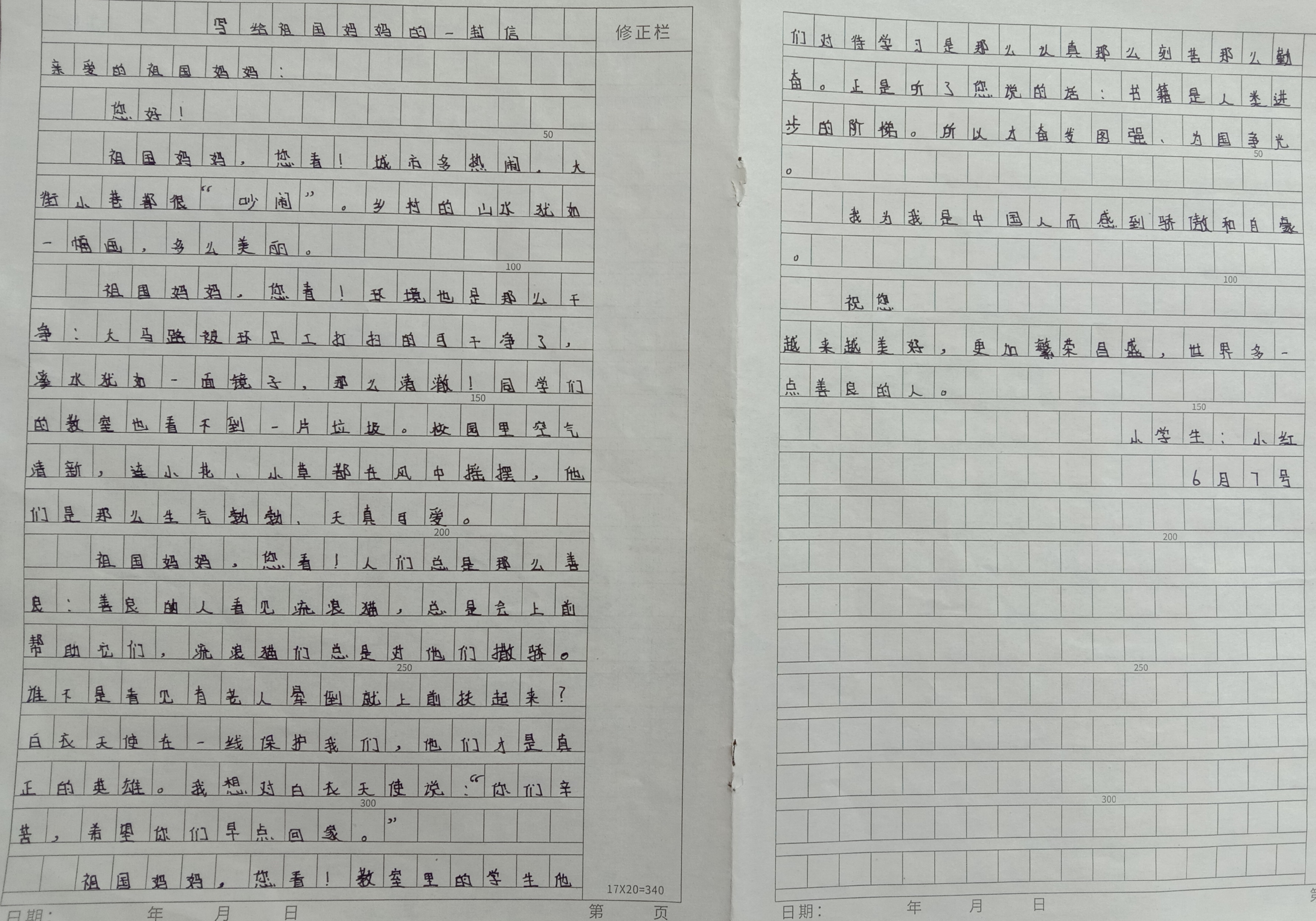写绐祖国妈妈的一封信