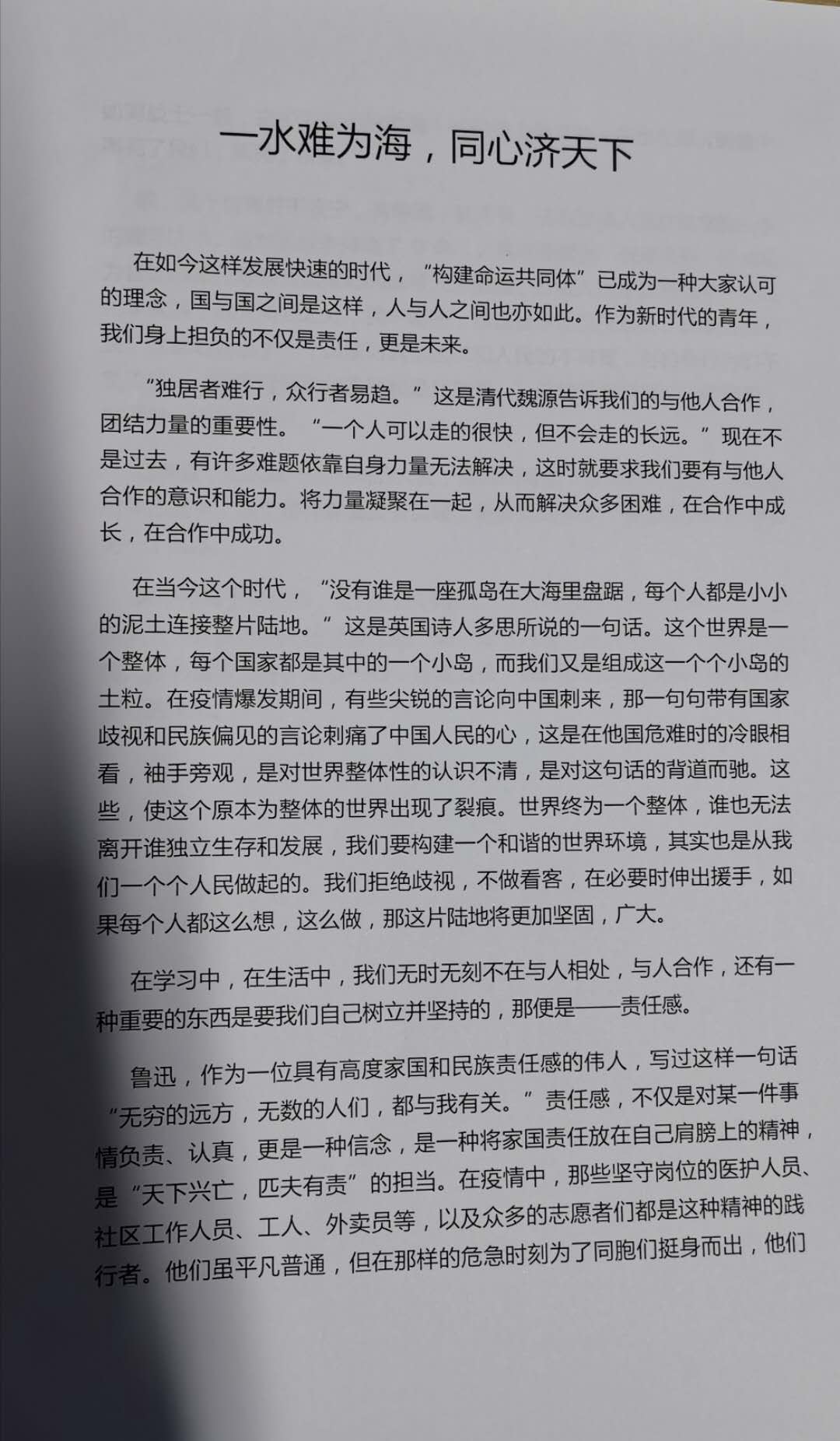 一水难为海,同心济天下