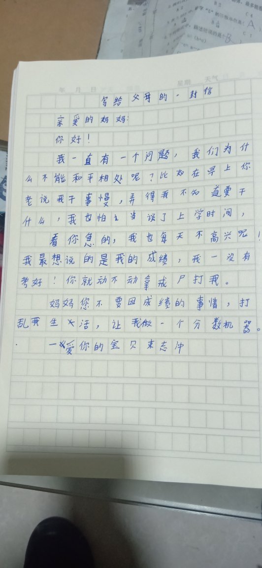 写给妈妈的一封信