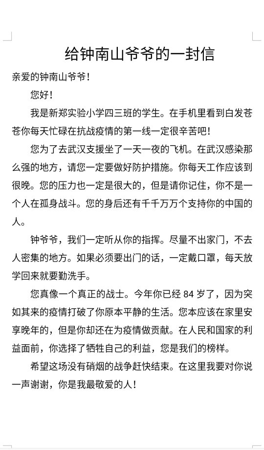 给钟南山爷爷的一封信