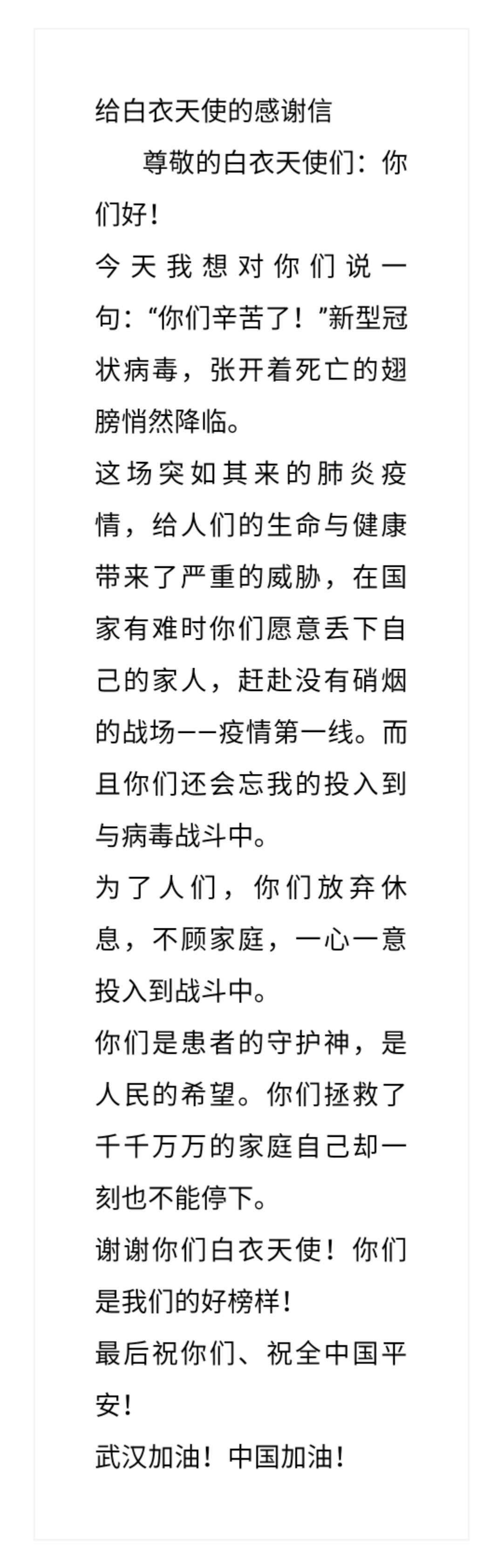 给白衣天使的信