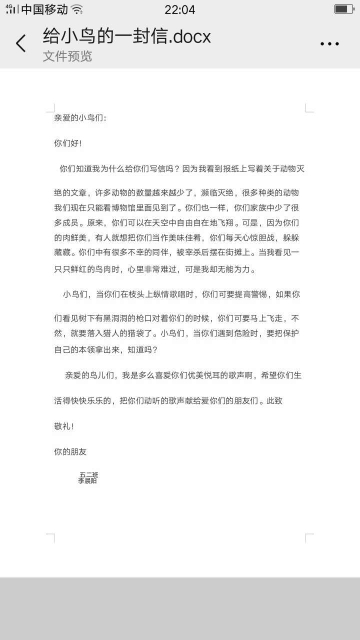 给小鸟的一封信