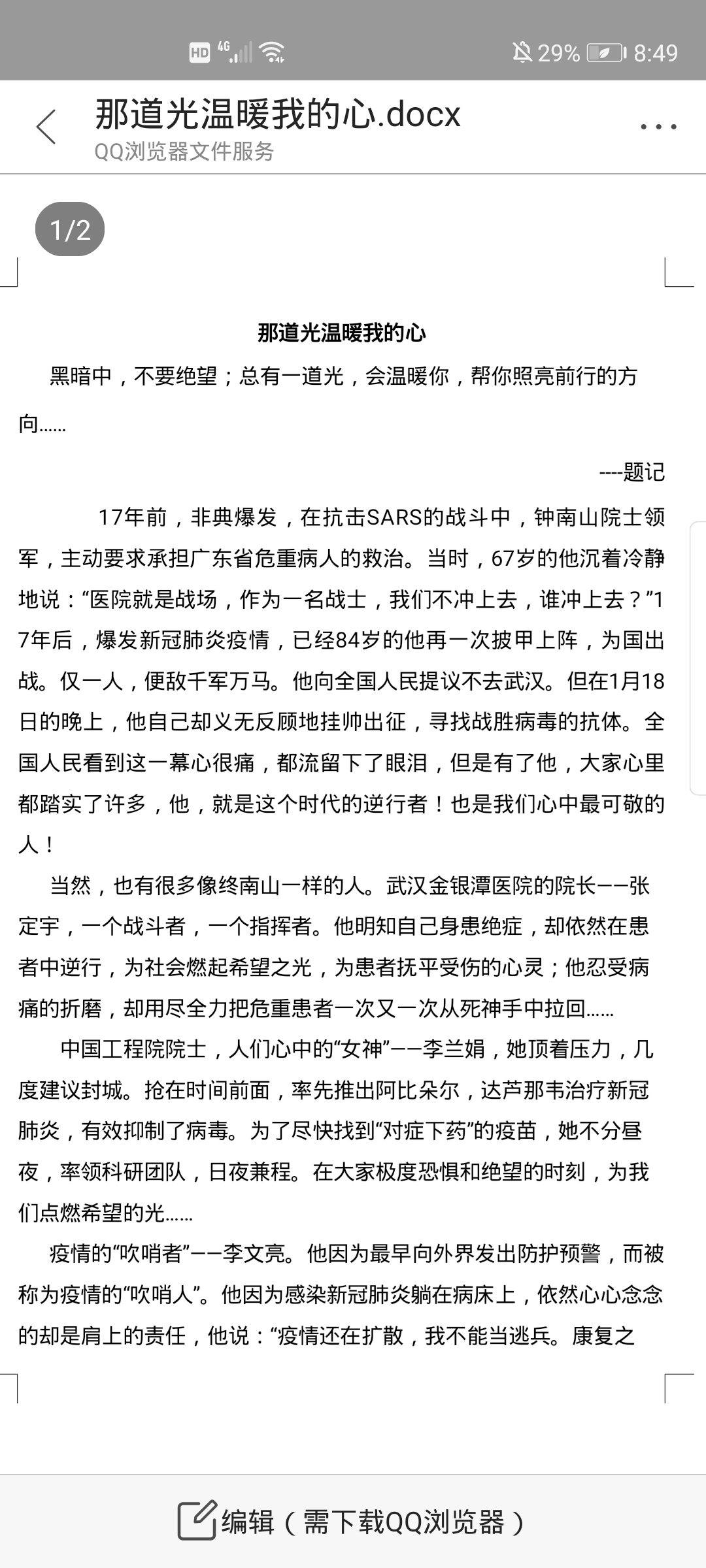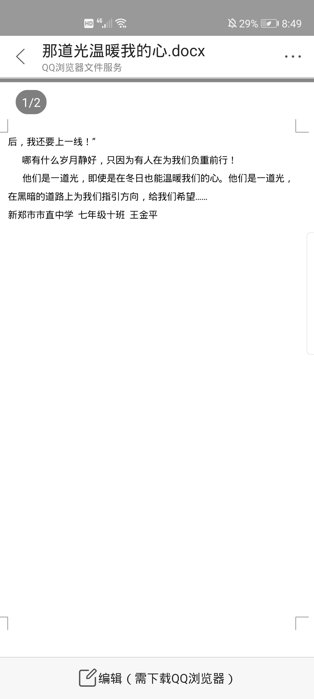 那道光温暖我的心