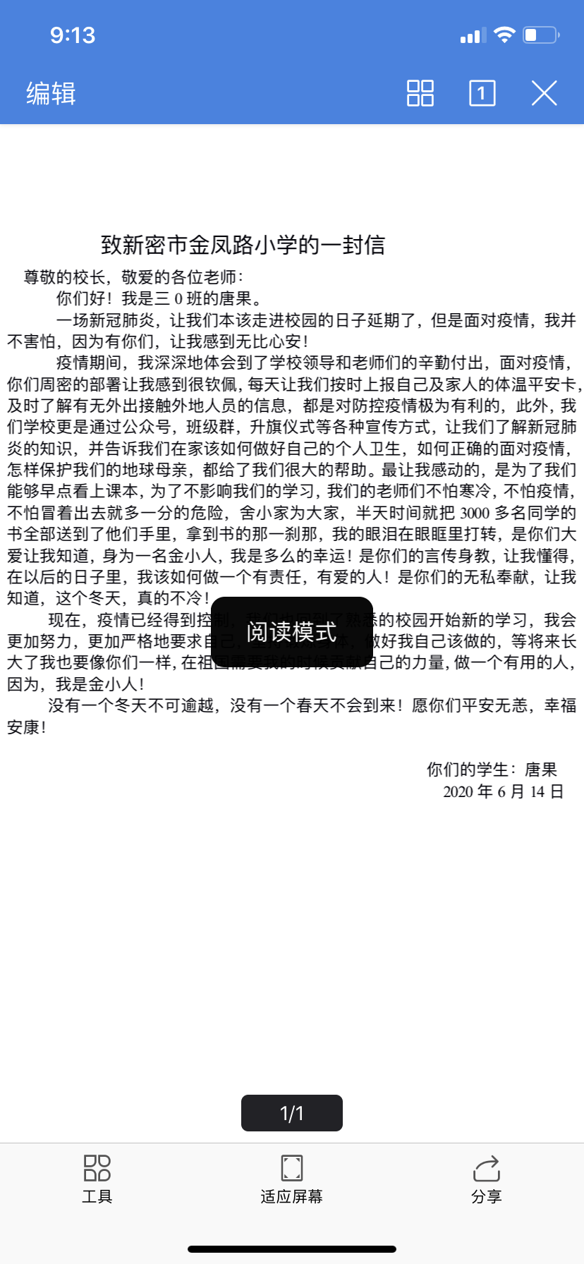 写给金凤路小学的一封信