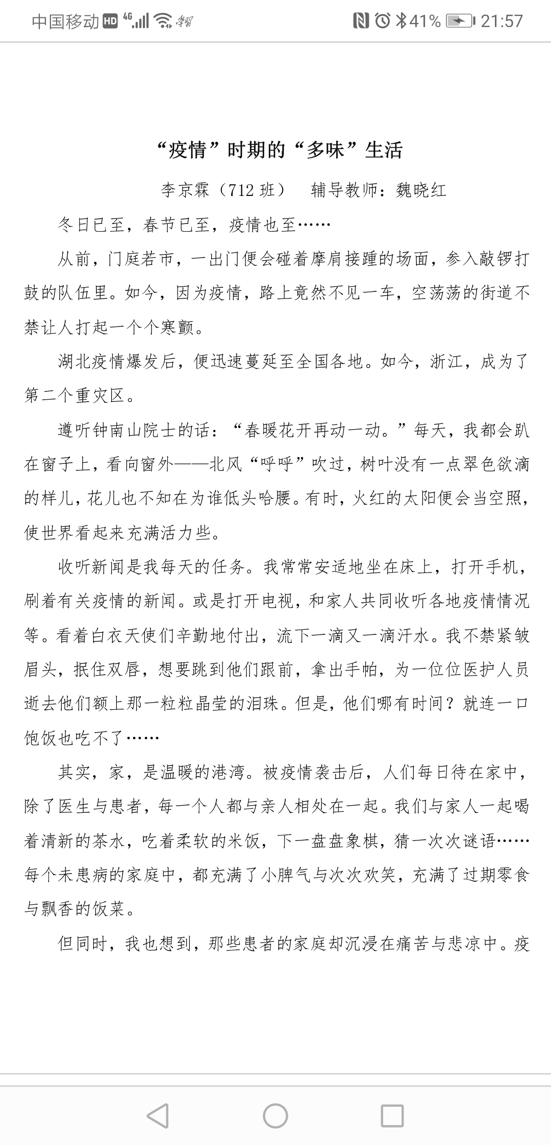 以下区域为指导老师点评区域,若您无法点评,请先核对此作文的指导老师名称与您的账户真实名称是否相同。