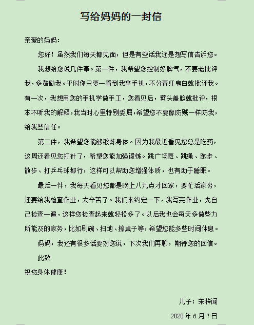 写给妈妈的一封信