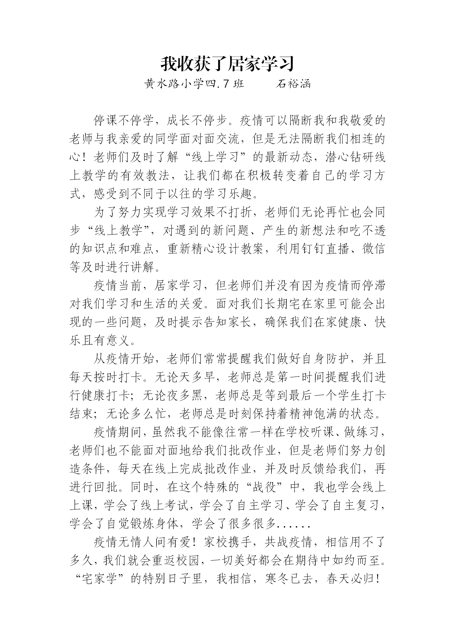 指导老师:王珂 所属学校:新郑市黄水路小学