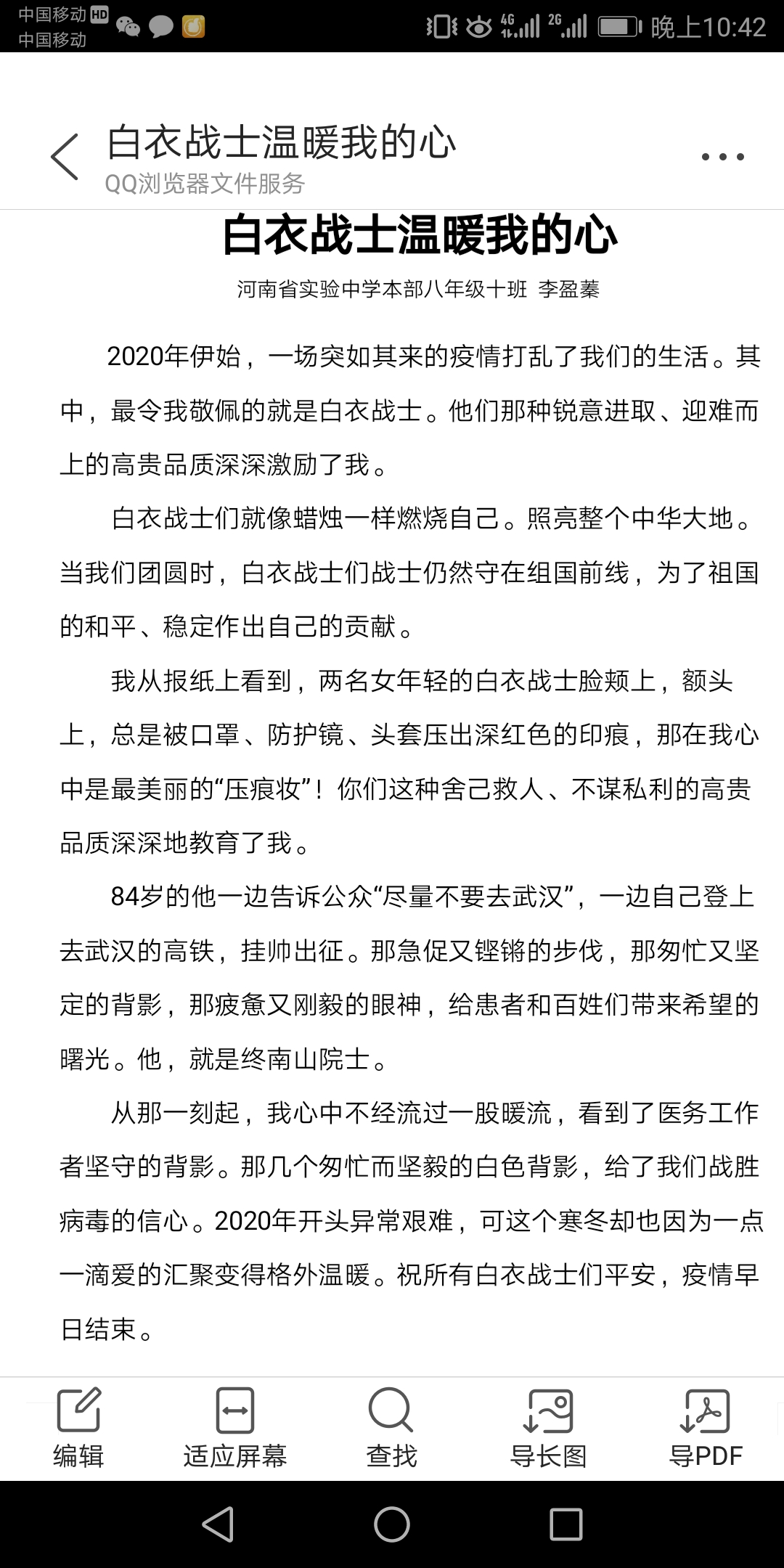 白衣战士温暖我的心