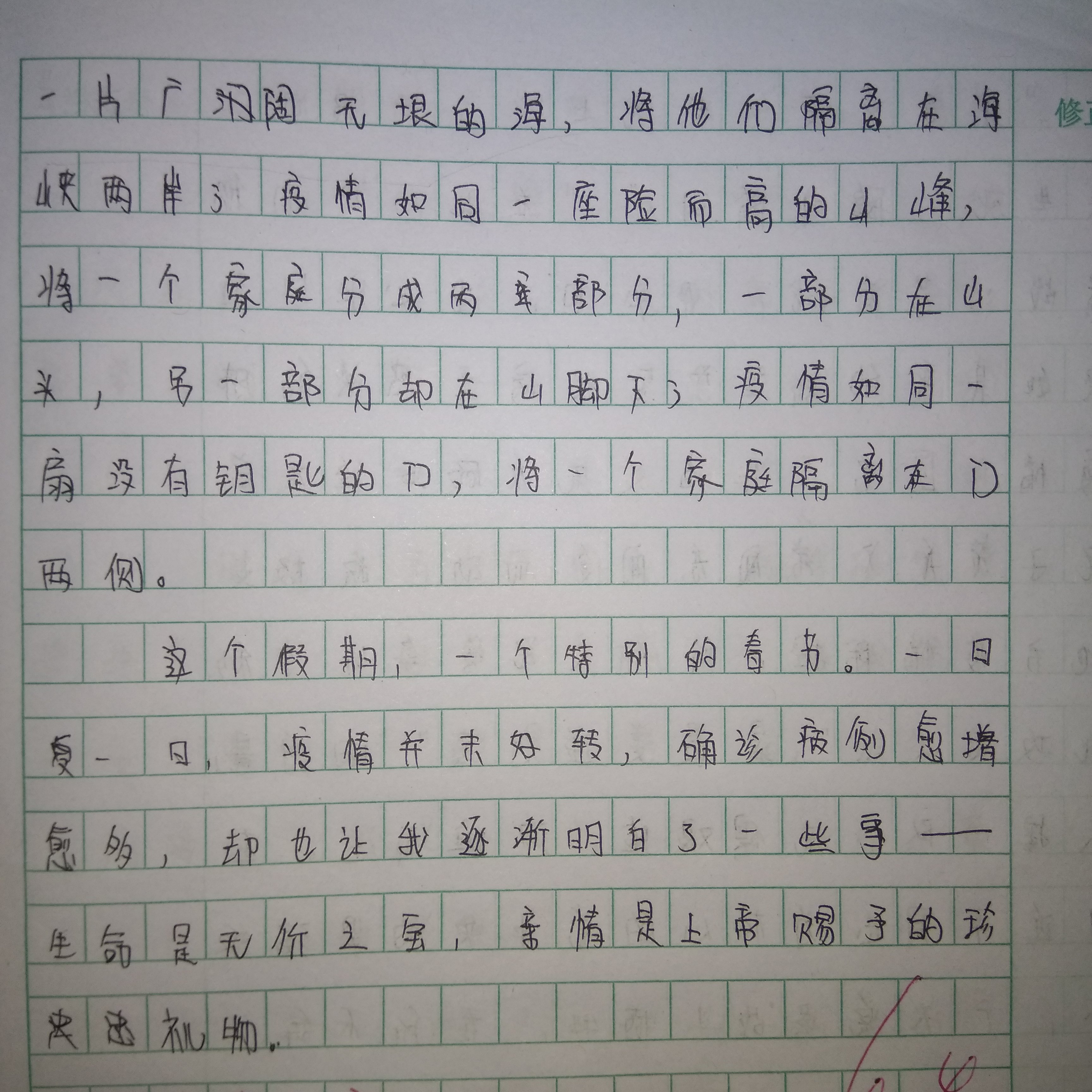 以下区域为指导老师点评区域,若您无法点评,请先核对此作文的指导老师名称与您的账户真实名称是否相同。
