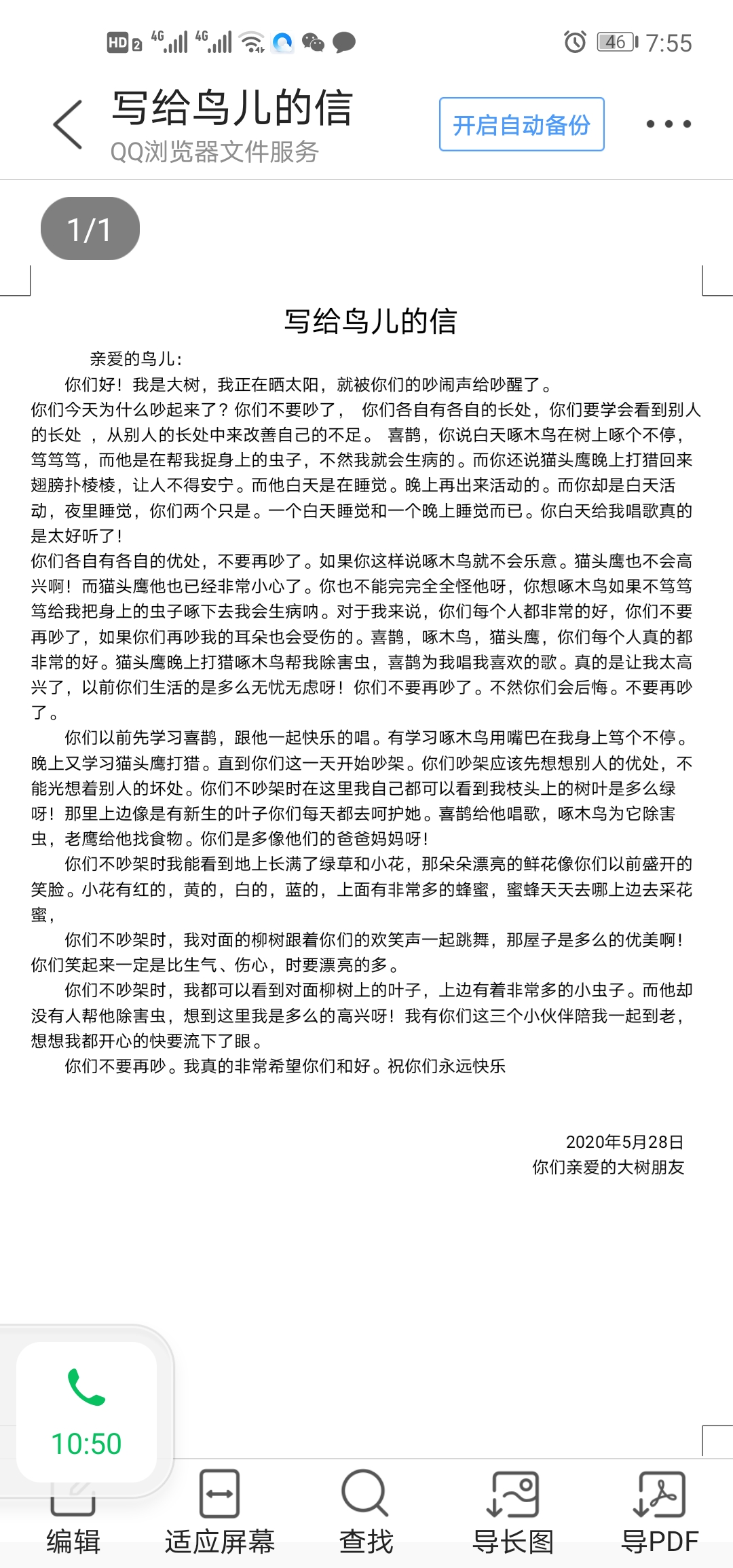 写给鸟儿的一封信
