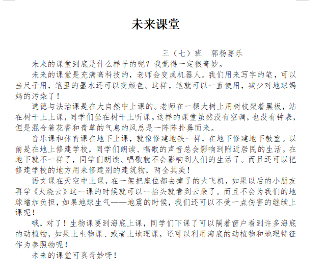 指导老师:孙梦瑶 所属学校:高新技术产业开发区实验小学