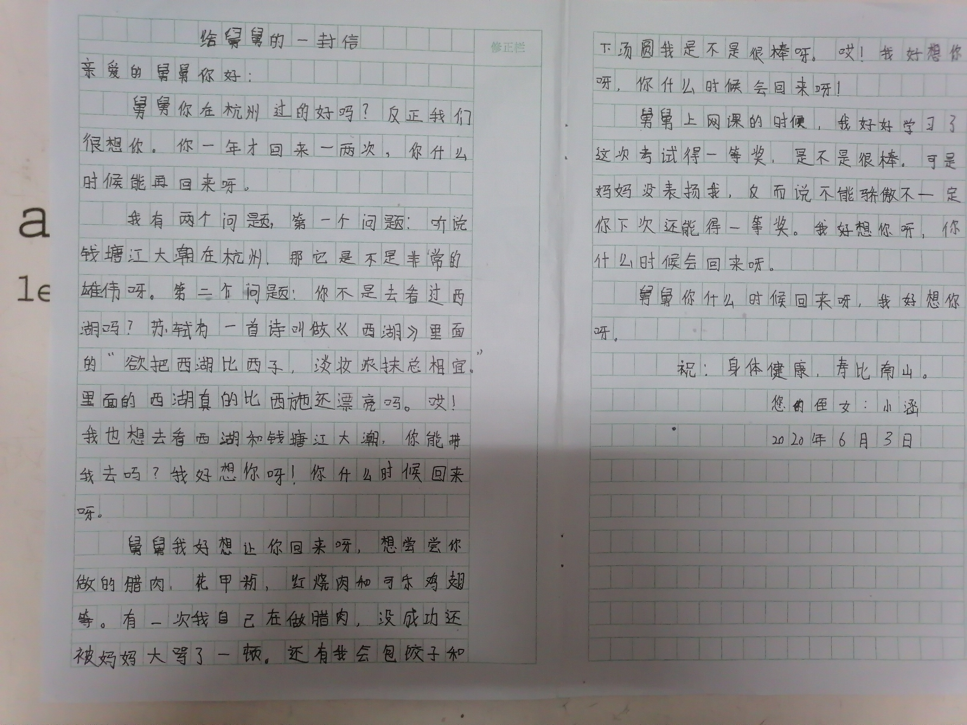 写给舅舅的一封信