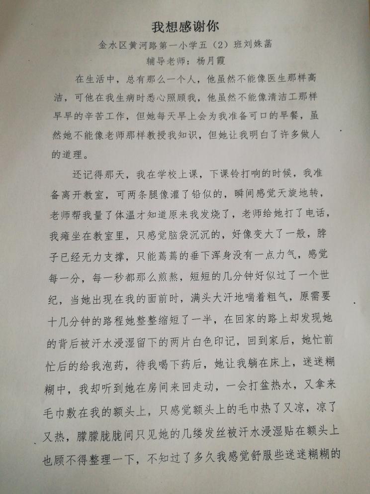 指导老师:杨月霞 所属学校:金水区黄河路第一小学