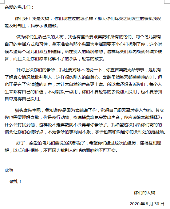 大树给鸟的一封信