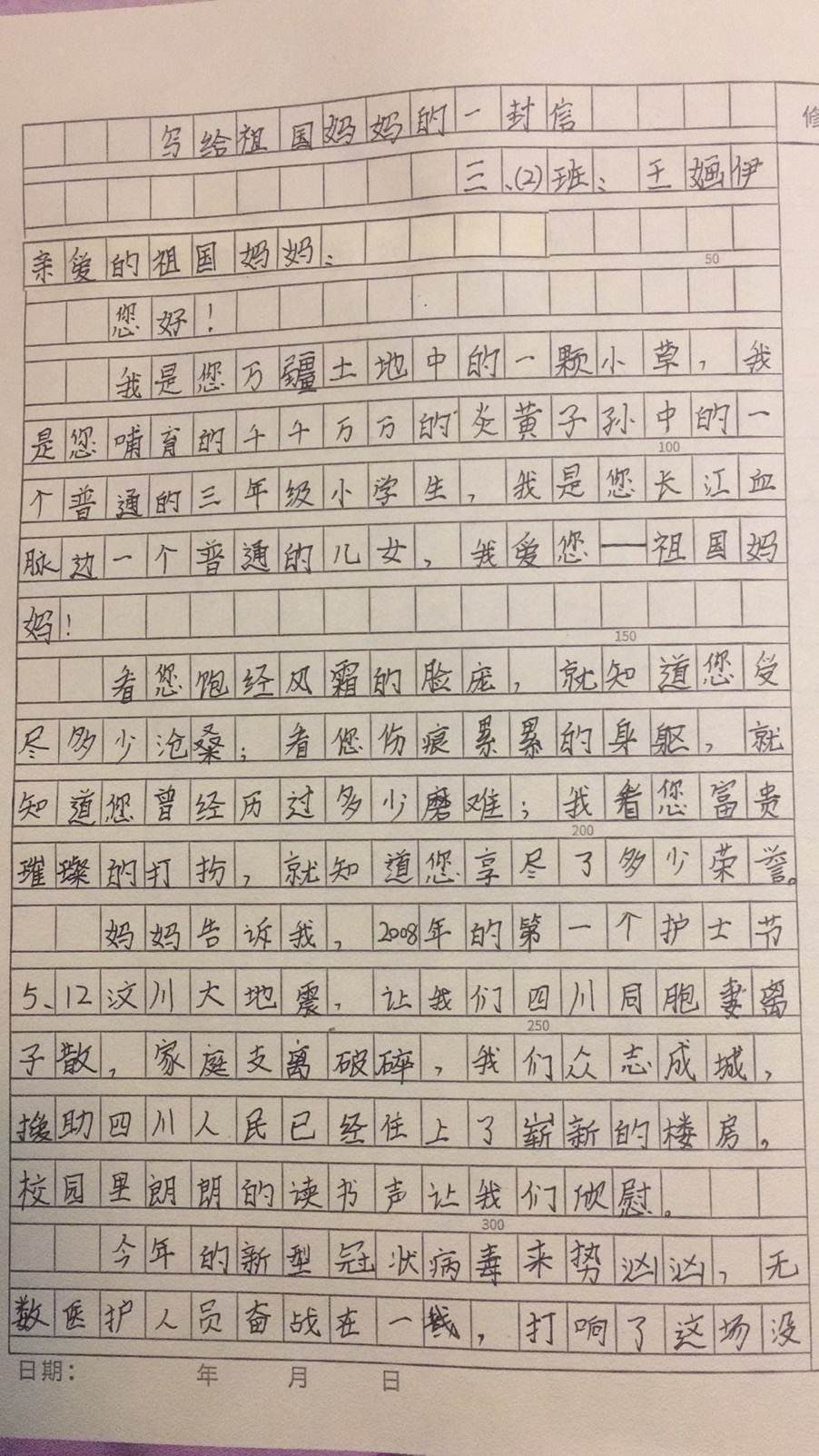写给祖国妈妈的一封信
