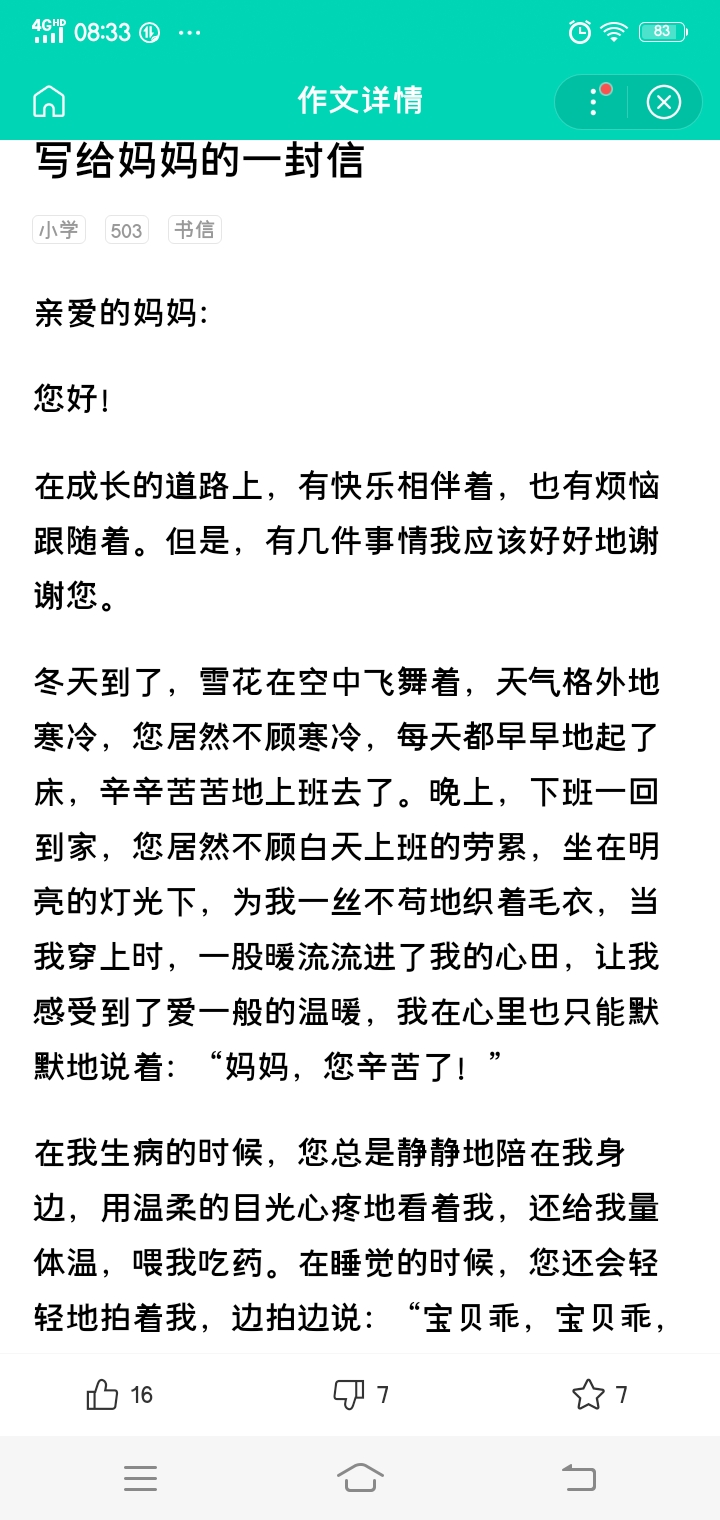 写给妈妈的一封信