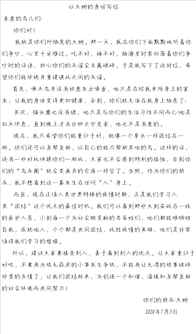 以大树的身份写信