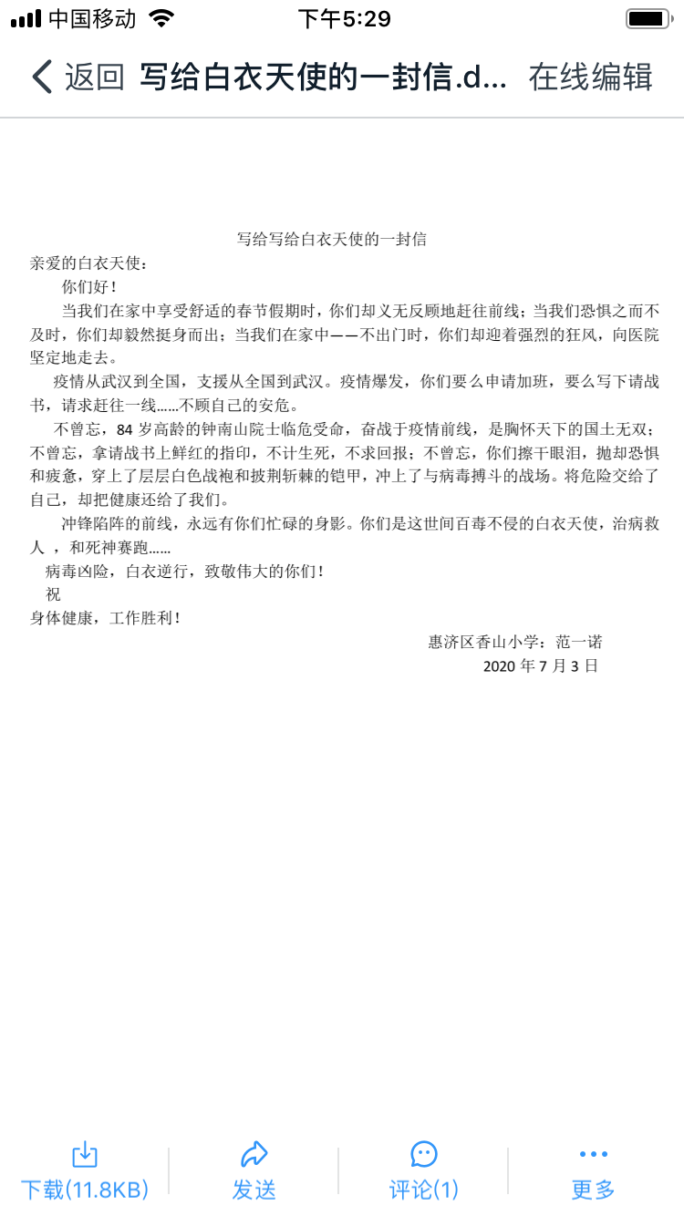 写给白衣天使的一封信
