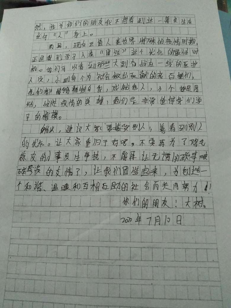 以大树的身份写信。