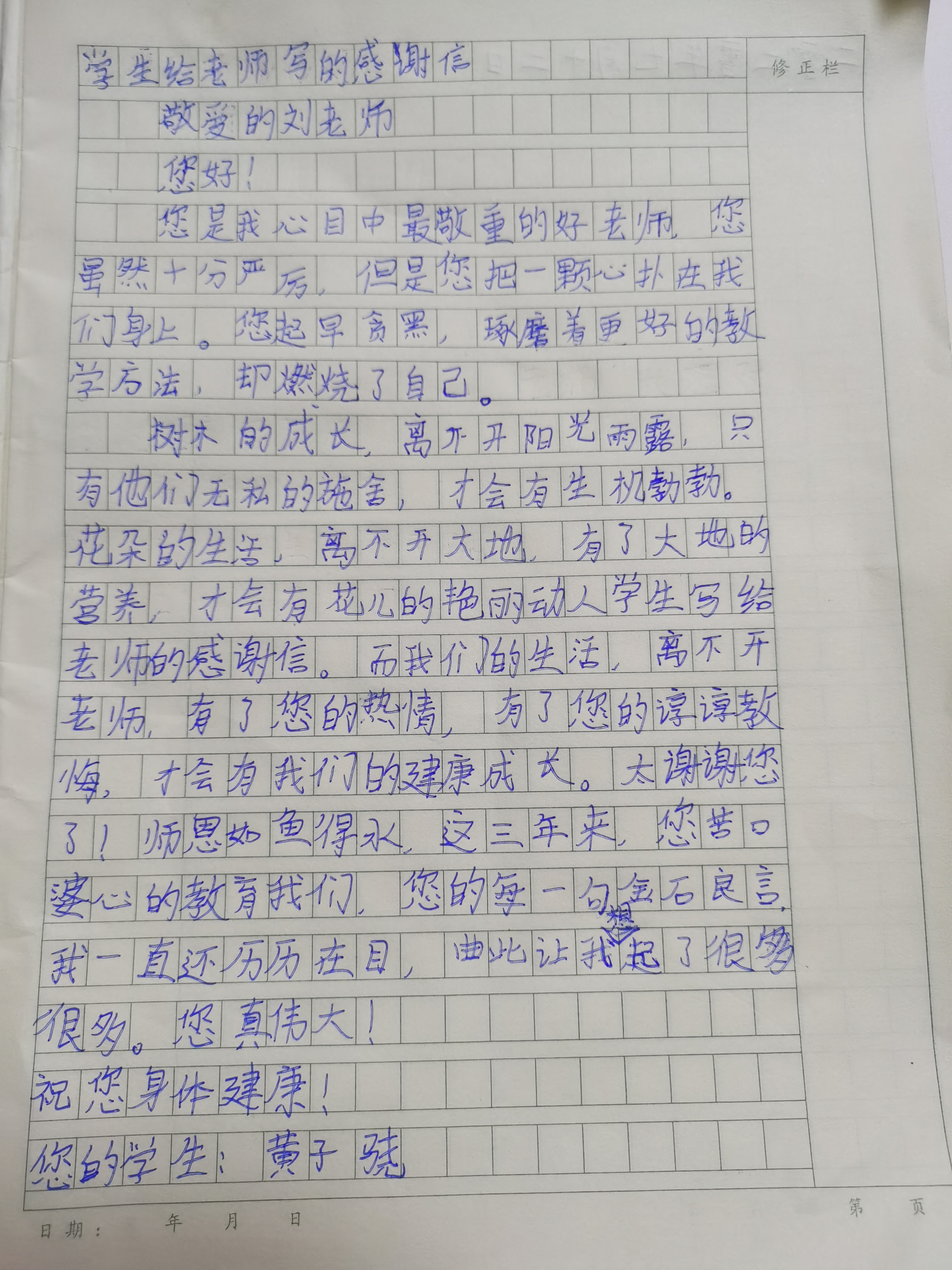 写给老师的一封感谢信