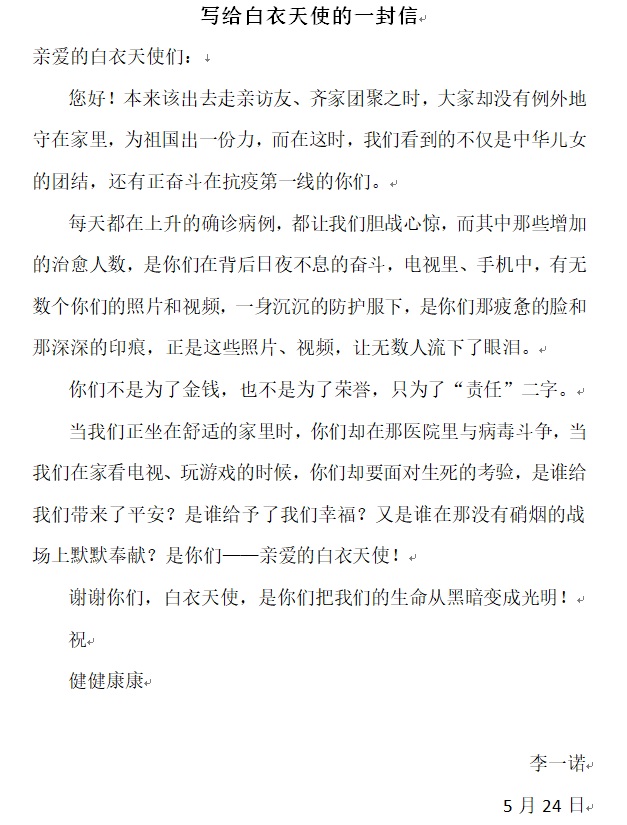 写给白衣天使的一封信