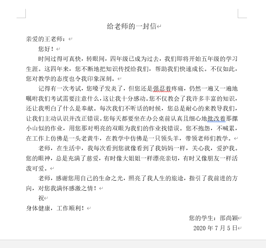写给老师的一封信