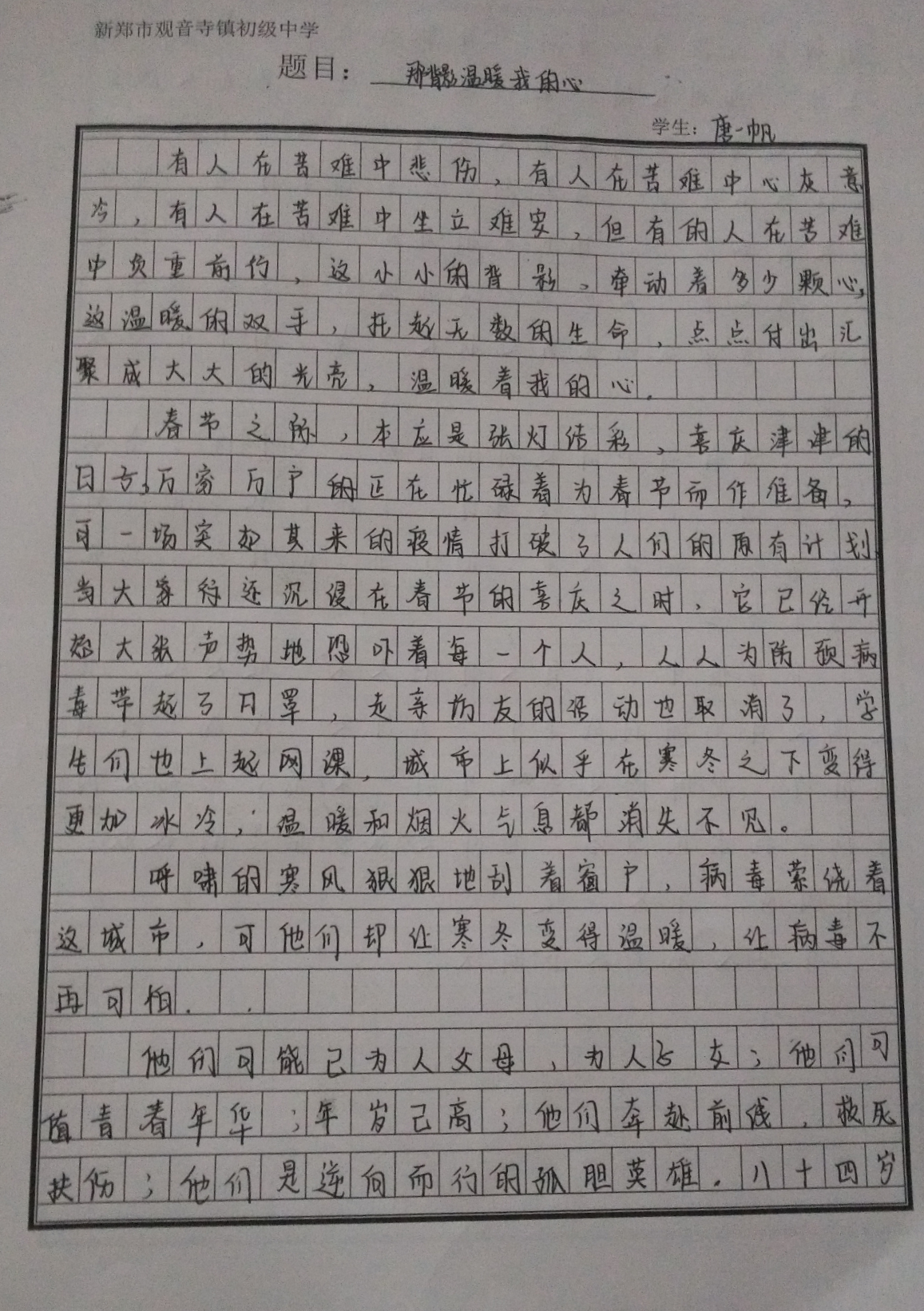 指导老师:李苗苗 所属学校:新郑市观音寺镇初级中学