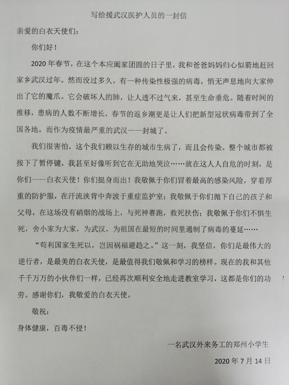 写给援武汉医护人员的一封信