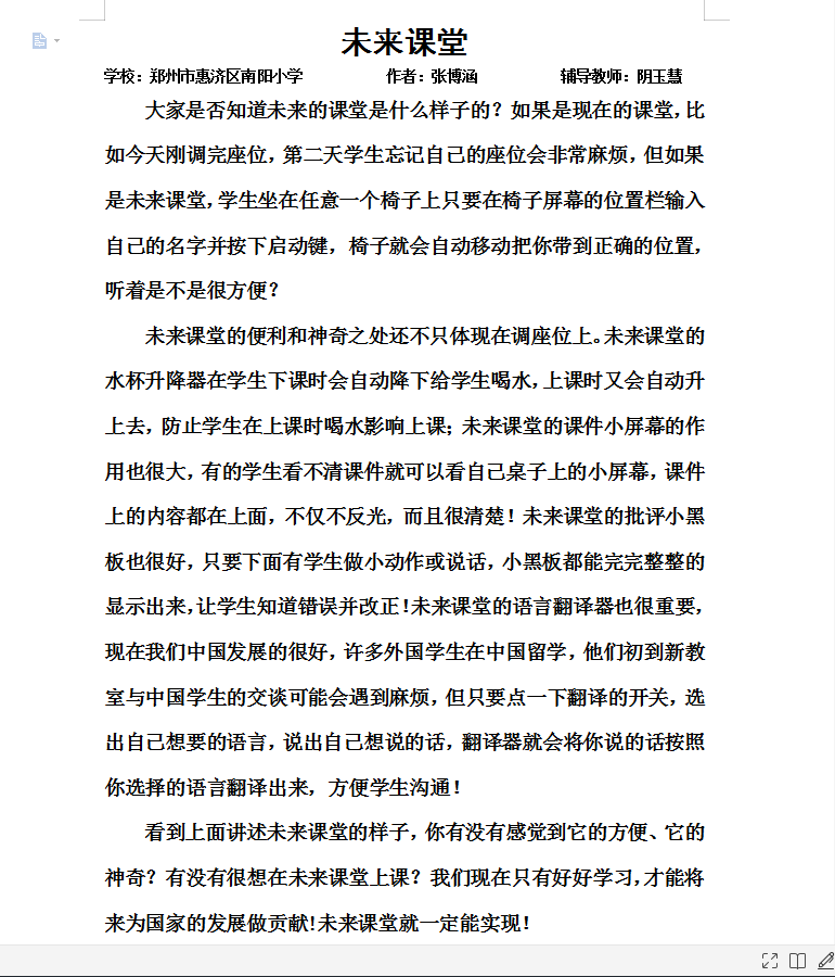 指导老师:阴玉慧 所属学校:郑州市惠济区南阳小学