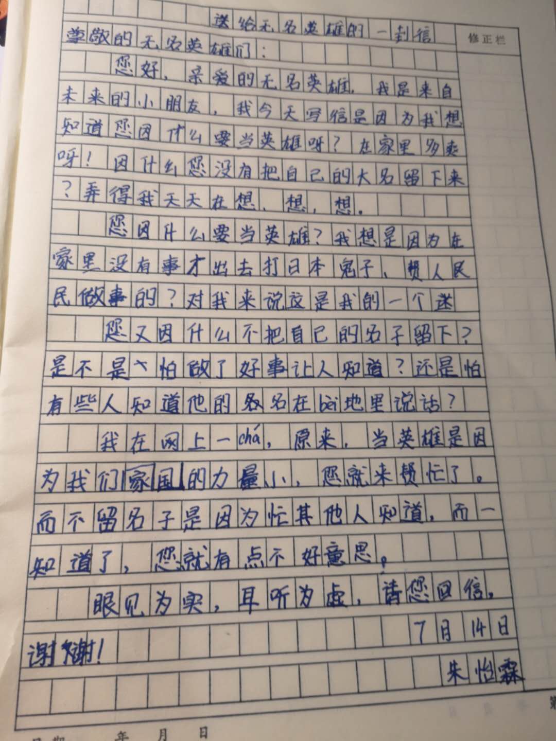 送给无名英雄的一封信