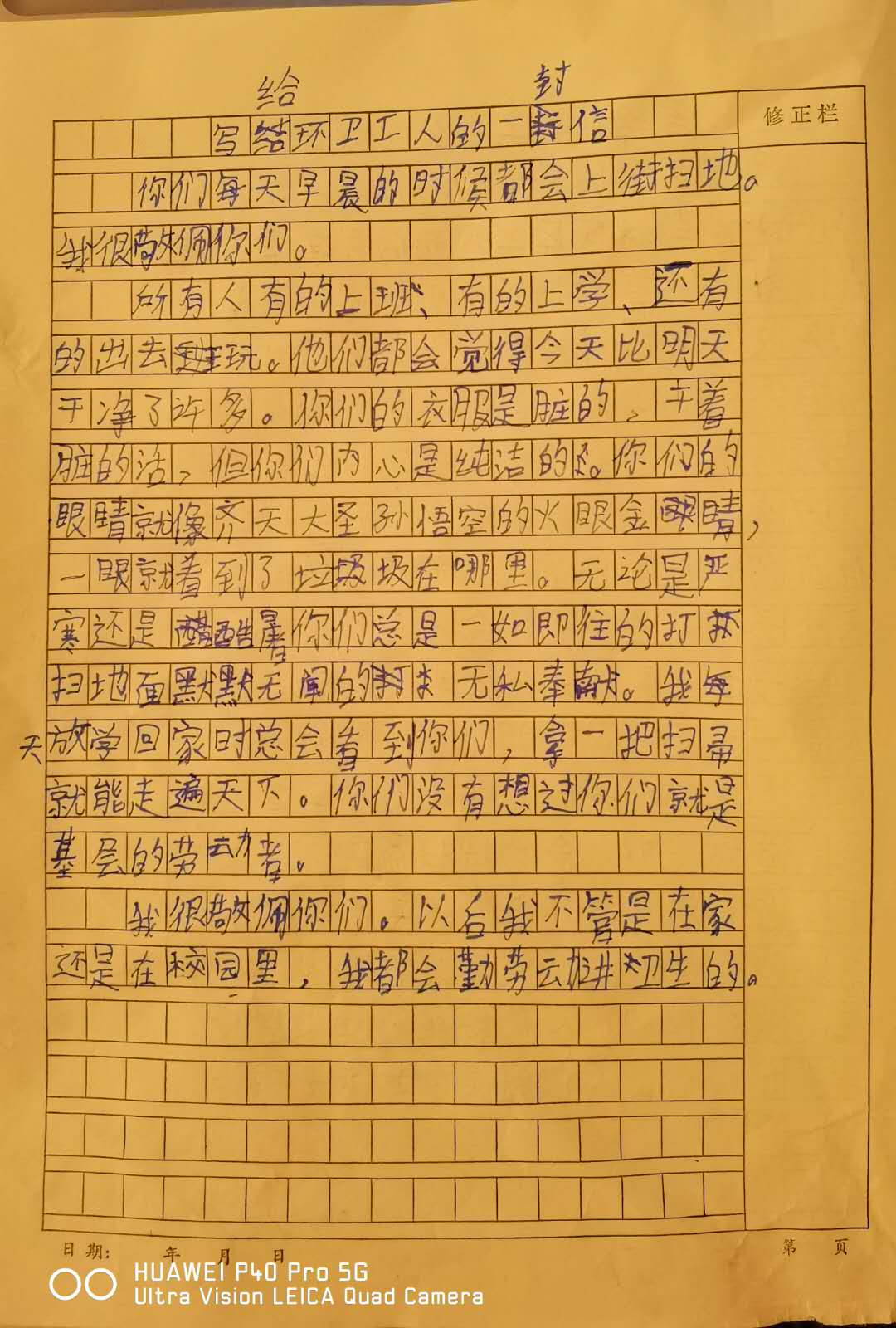 写给环卫工人的一封信
