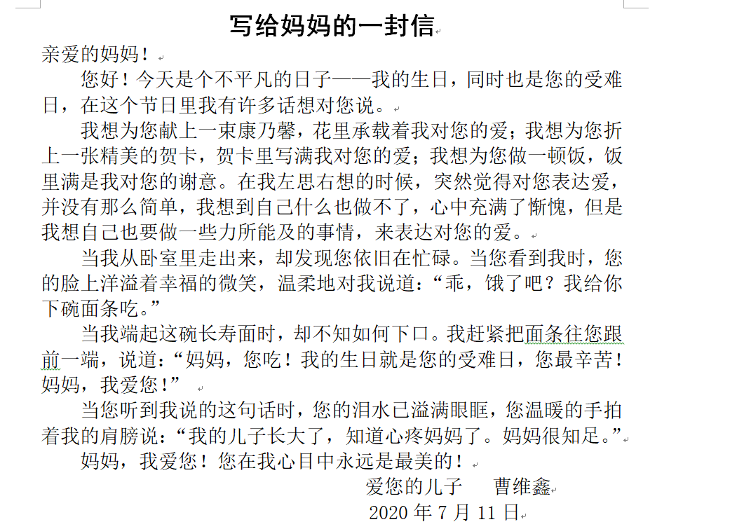 写给妈妈的一封信