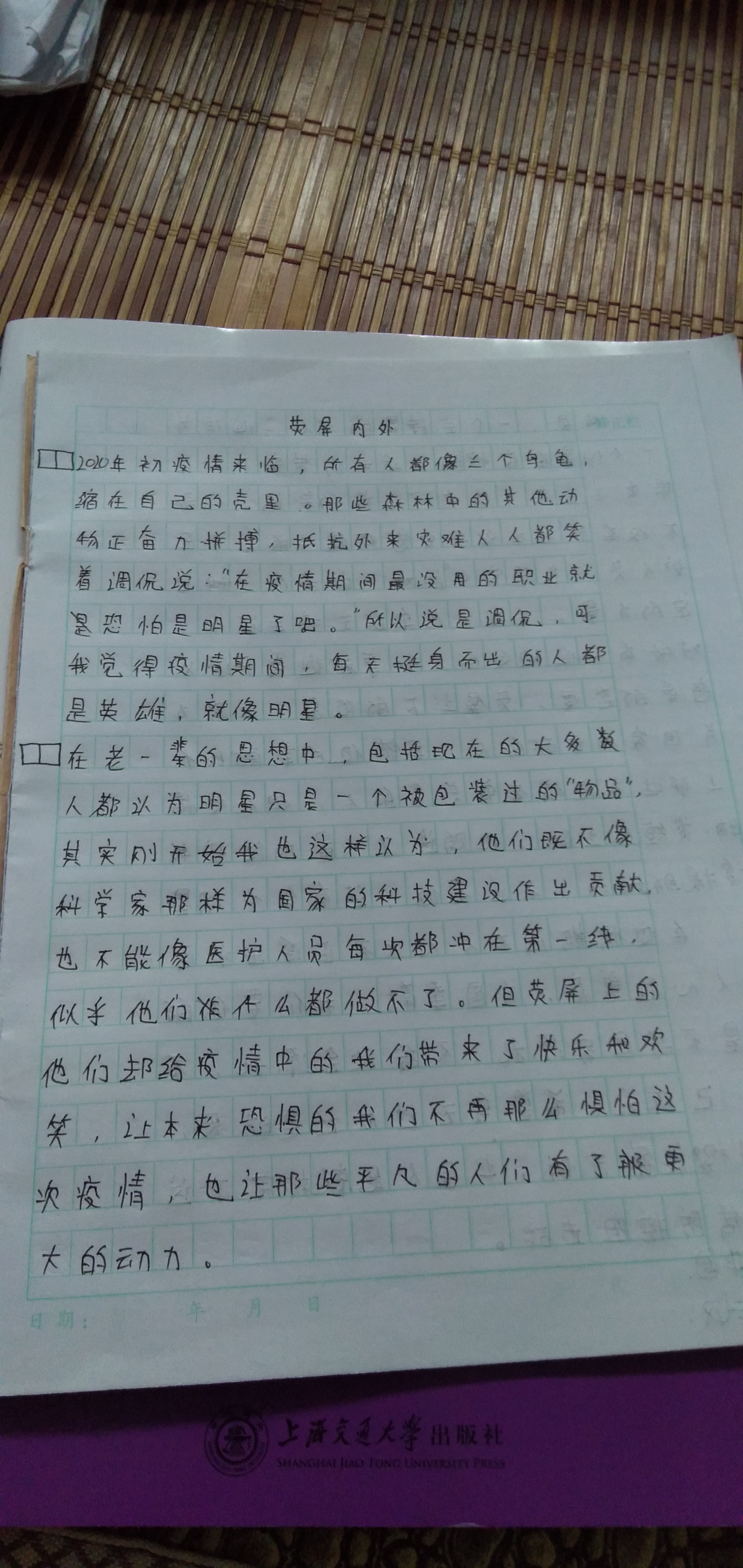 以下区域为指导老师点评区域,若您无法点评,请先核对此作文的指导老师名称与您的账户真实名称是否相同。