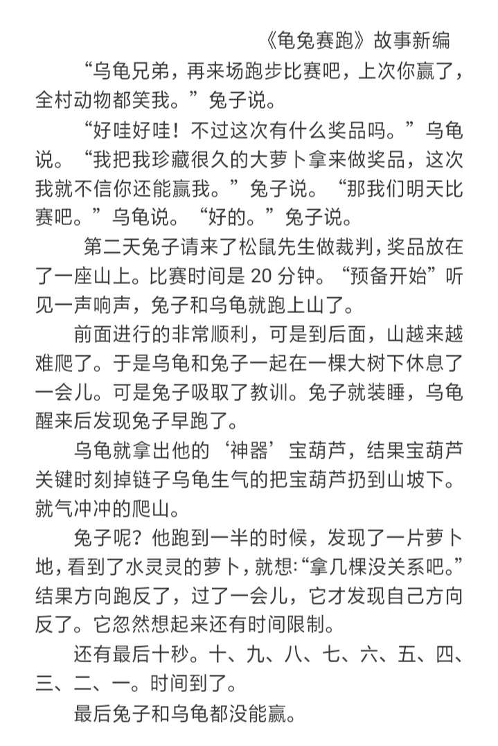 龟兔赛跑故事新编