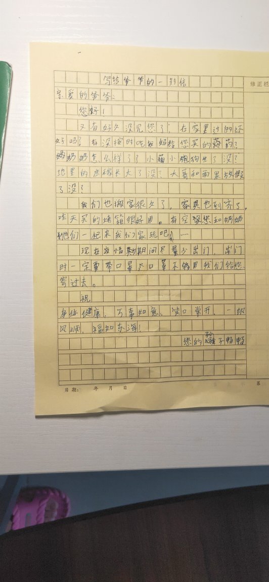 写给爷爷的一封信