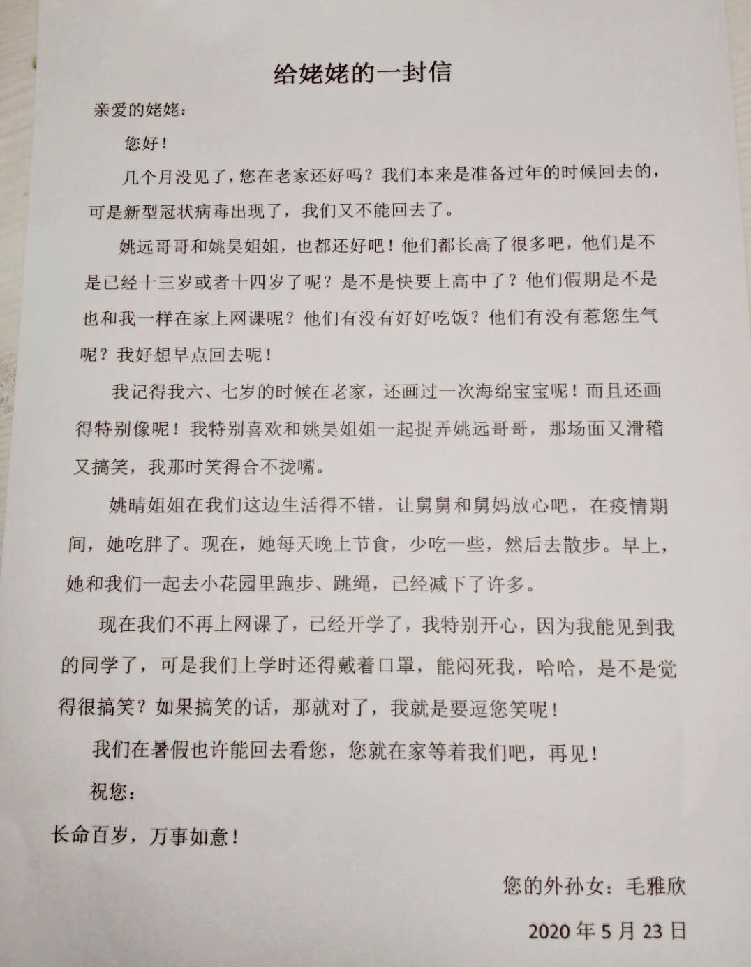 写给姥姥的一封信