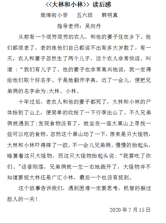 《大林和小林读后感》