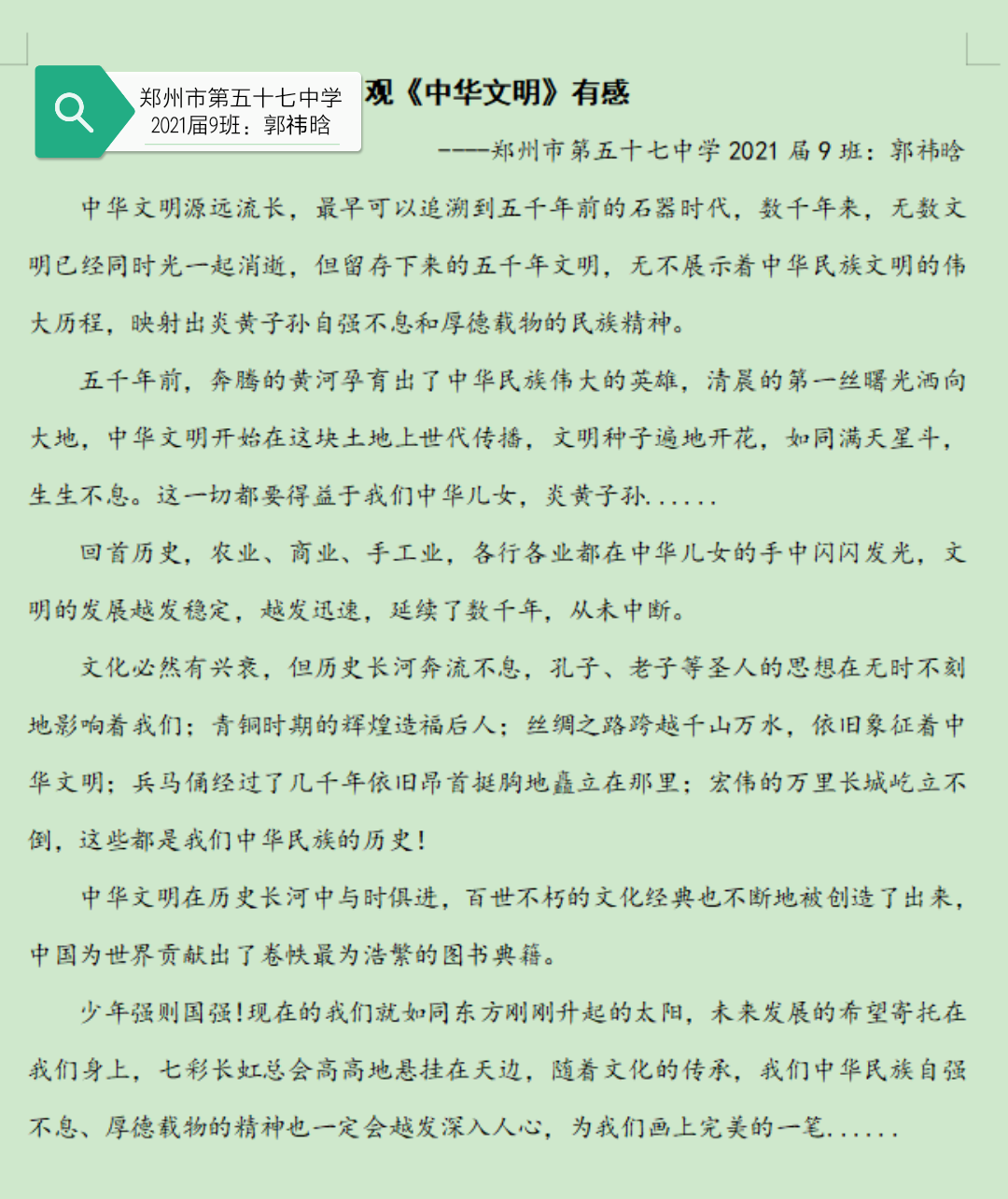 指导老师:李玲 所属学校:郑州市第五十七中学