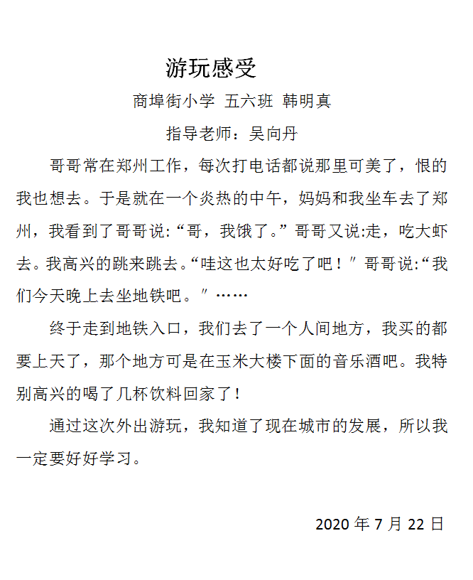 指导老师:吴向丹 所属学校:登封市商埠街小学