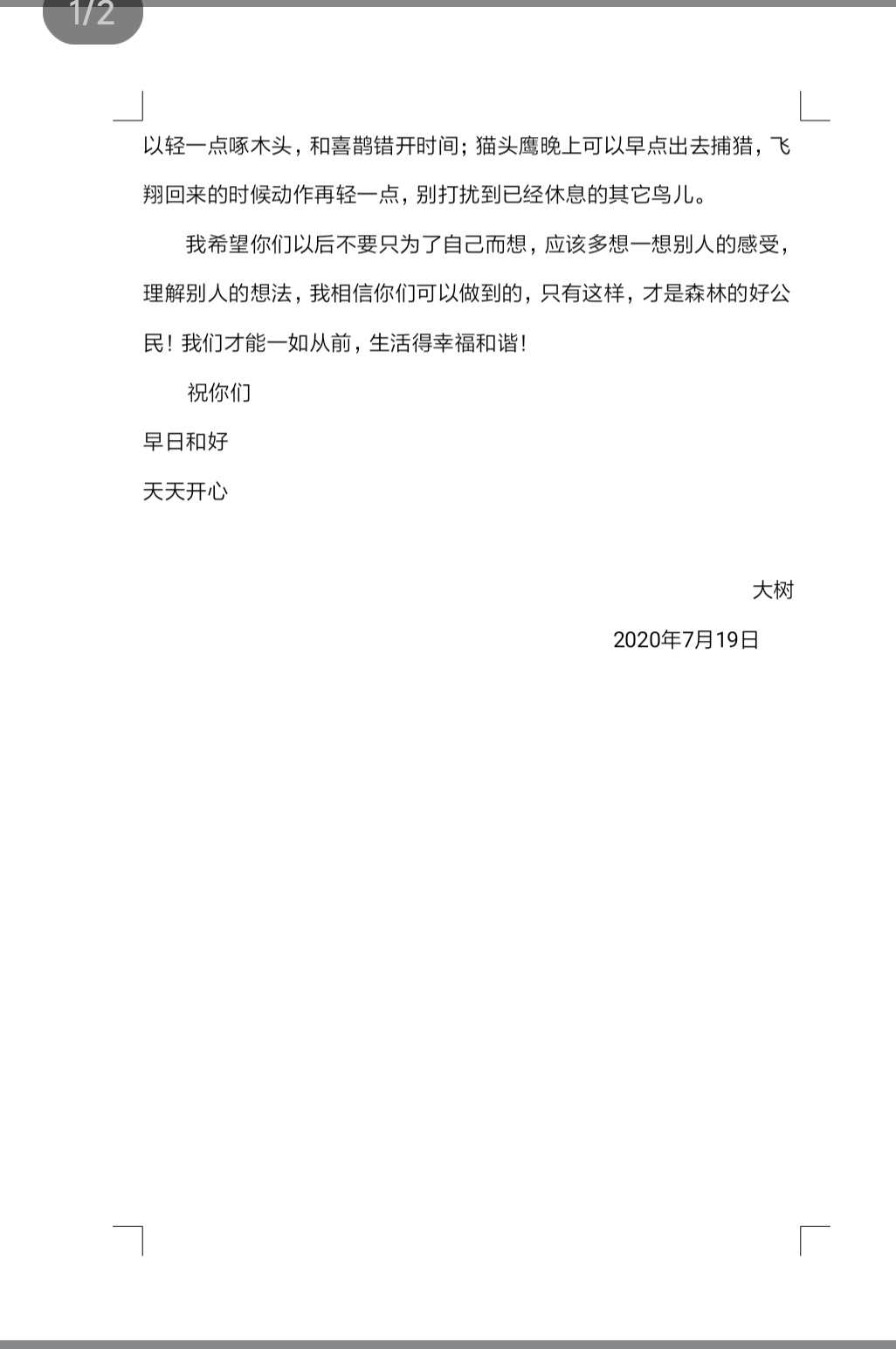 给鸟儿们一封信