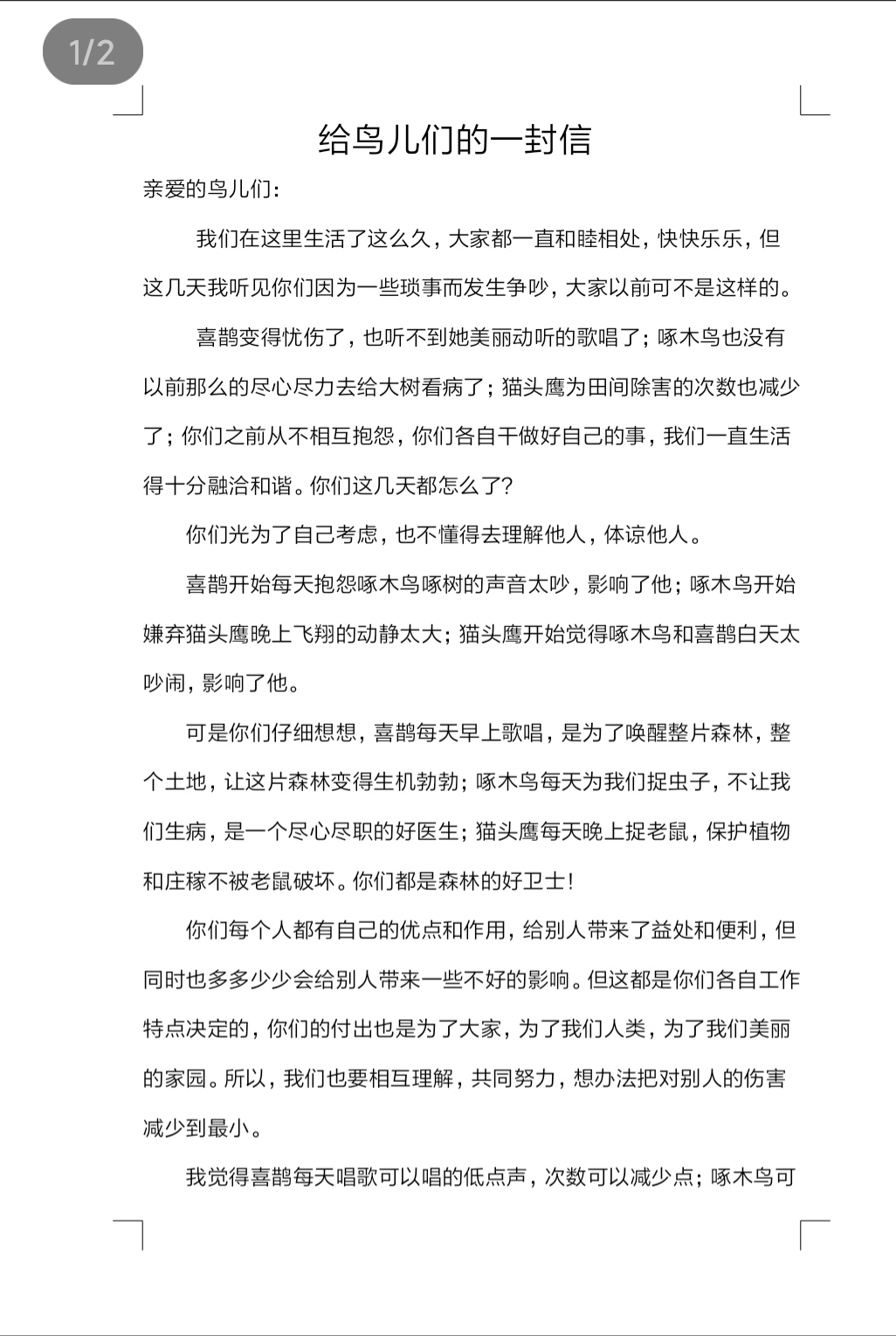 给鸟儿们的一封信