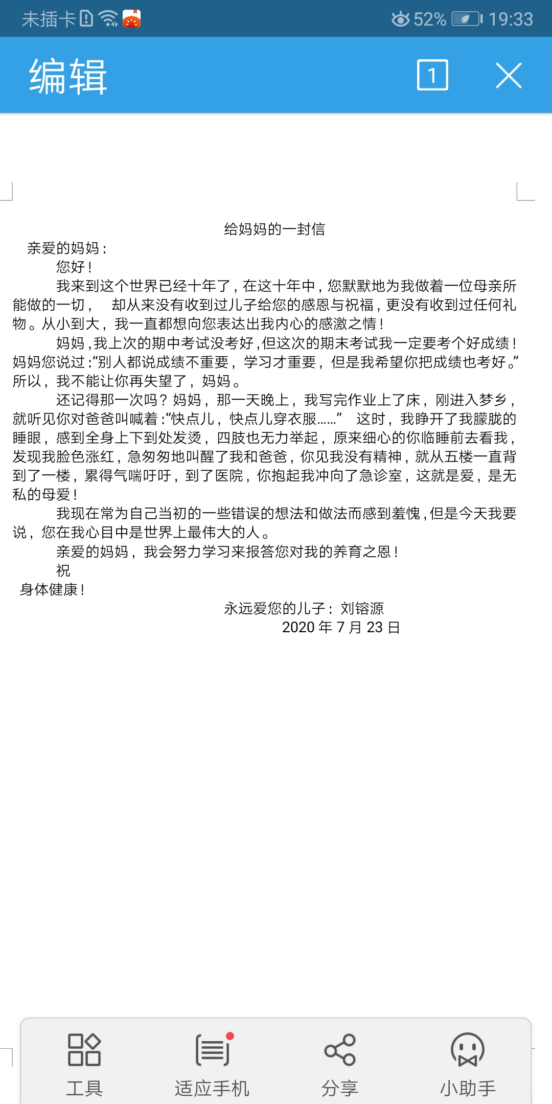 写给妈妈的一封信