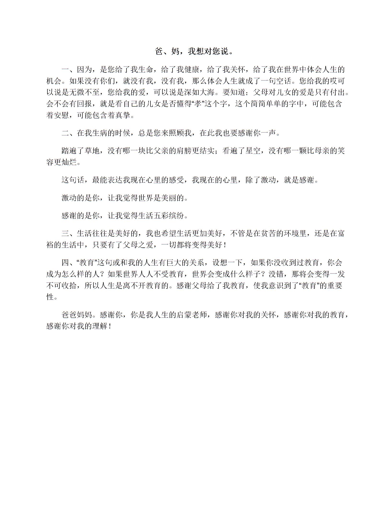 爸爸,妈妈,我想对您说