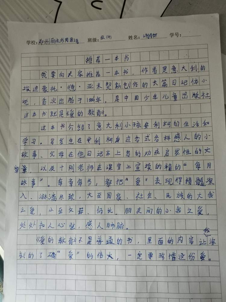 指导老师:李元元 所属学校:郑州丽水外国语学校