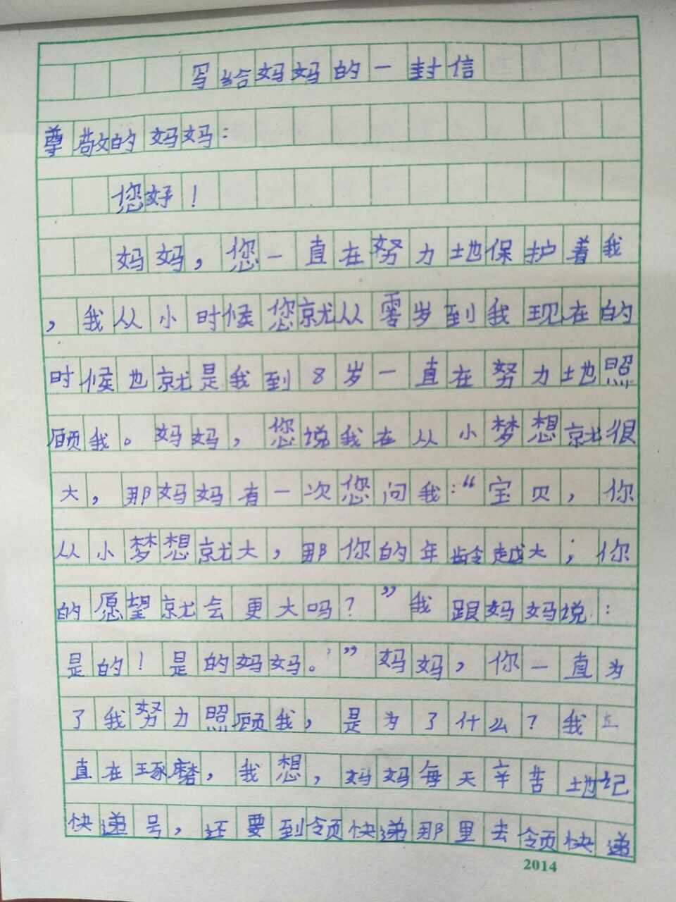 写给妈妈的一封信