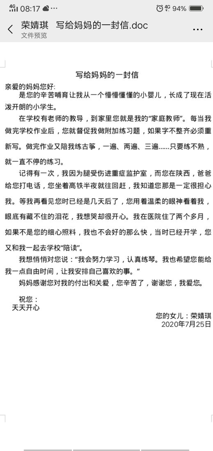 写给妈妈的一封信