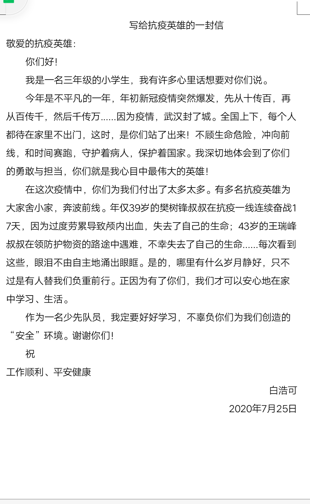 写给抗疫英雄的一封信