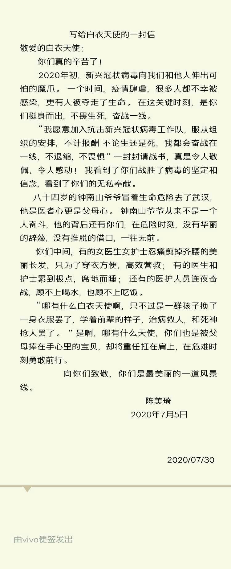写给白衣天使的一封信
