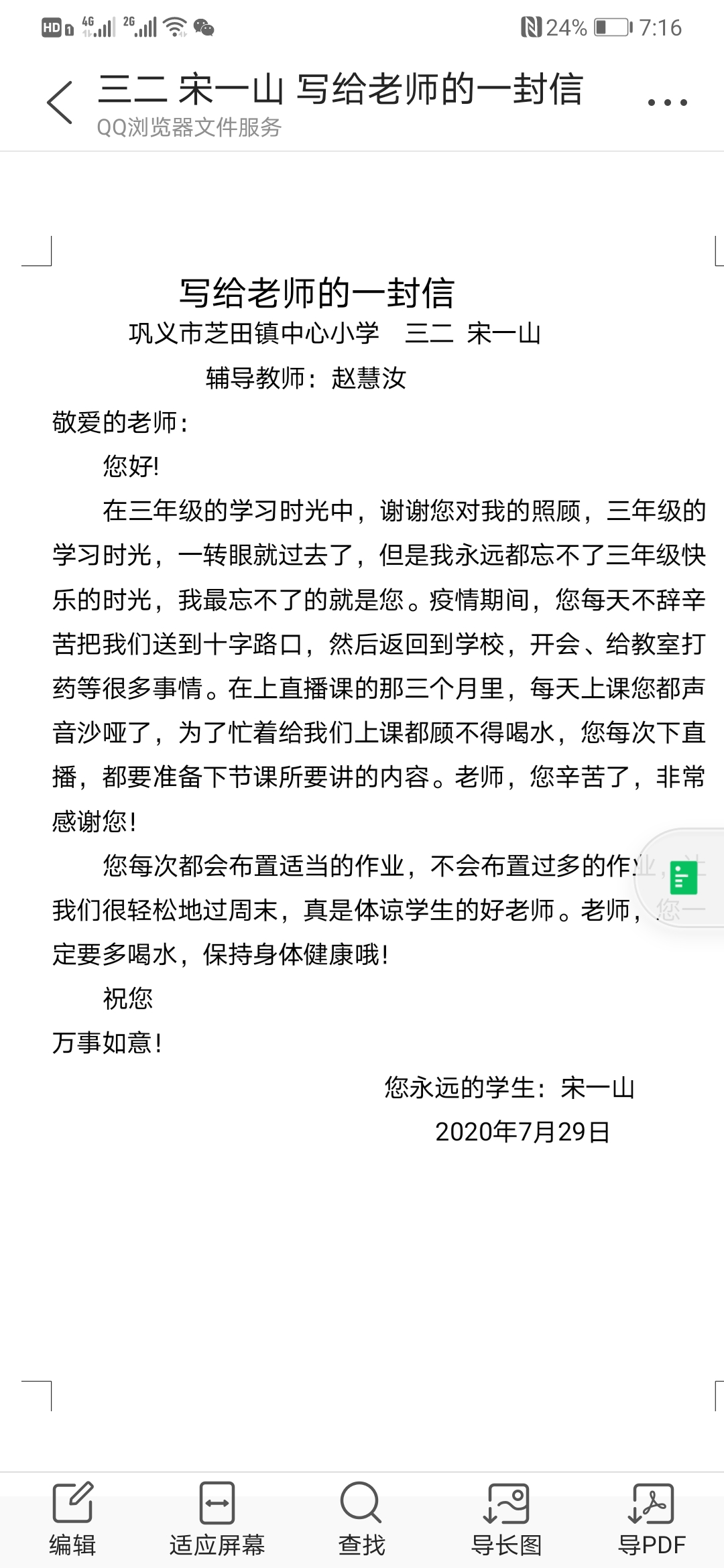 指导老师:赵慧汝 所属学校:巩义市芝田镇中心小学