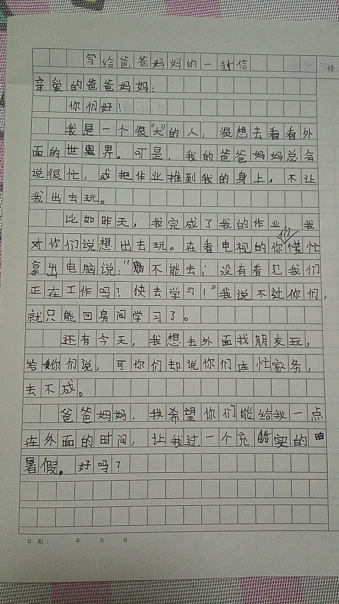 写给爸爸妈妈的一封信